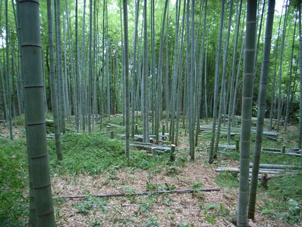竹ベンチは、しっかりと腰を落ち着ける椅子ではなく、もたれかかる壁でもない、腰掛け易く立ち易い、微妙な高さに設定しています。孟宗竹ならではの太さがしっかりと体重を支えます。