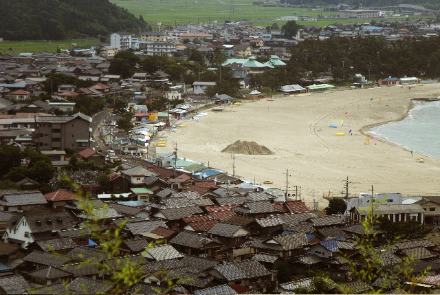 ここは最初に高浜に来た際(昨年8月末)に訪れた場所なので、再び浜ひろいで来るなんて、時間の流れを感じます。砂浜の色は、山土のせいか黒色にちかく、雑草が生えています。また周囲を緑濃い山々に囲まれているので、風も吹かず静かでしたし、水平線が見えるような、いつもの開放的な景色とちがい落ち着いた雰囲気が新鮮でした。