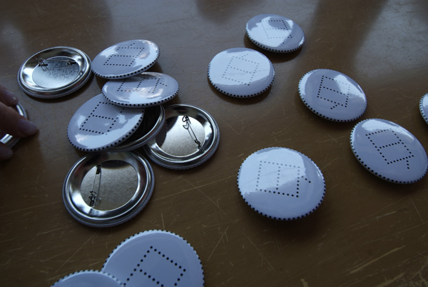 無理を言って、「白」の外にある点線で描かれた円を、バッジを折り曲げるギリギリのラインにまでもってきました。これにより立体的に見えるようになり、「白」が少し胸を張っているようで、誇らしげにしている感じがしませんか?個人的には、とてもお気に入りなので、秋に開催するイベントの時に再製作したいと思います(予約受け付けます!)。