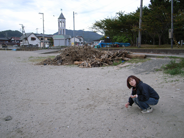前回滞在中の9/11金曜に、城山エリアでの浜ひろいに集まったメンバーをご紹介します。道田、のかた、政策推進室・金森さんの計3人でしたが(笑)、鳥居浜や和田浜でも緑色のボミ袋がチラホラ見えて、心強く、そして清々しかったです。