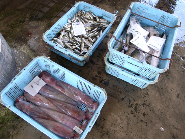立派な観光資源になります。時間帯的にも、ちょうどチェックアウト後なんで早すぎず、場所も近く、絶妙です。エリアを決めて見学を許可し、本日獲れた魚は、なんて立て札つけとけば、観光シーズンには干物もバンバン売れそうです。