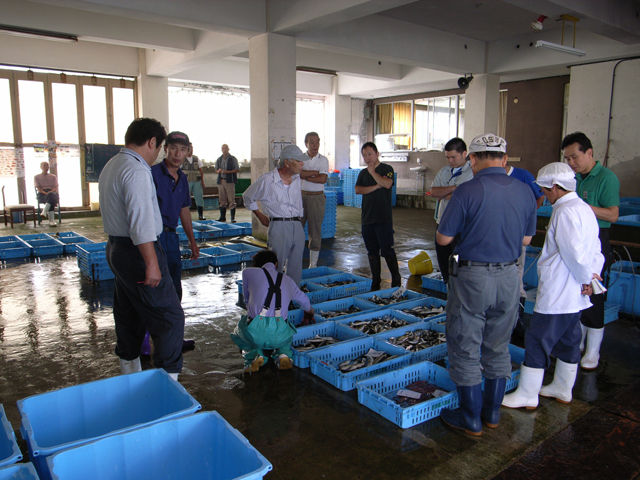 チェックアウト後は、昨日は見れなかった海側の地区をまわり、朝10時から高浜町漁業協同組合さんのセリを見学させてもらいました。アジ、イカ、サバ、スズキ、カジキ、、、見てるだけで十分刺激的、面白かった!