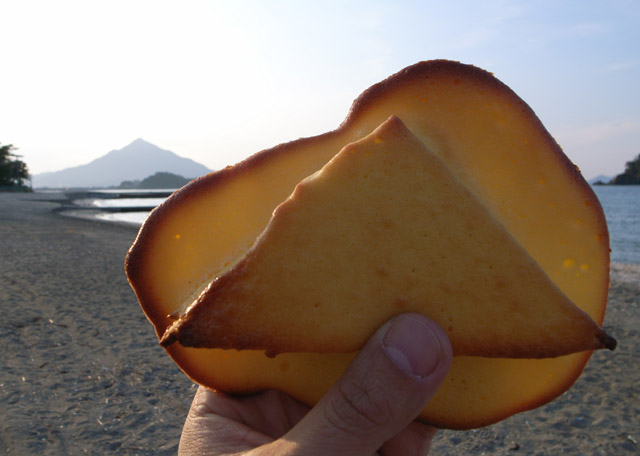 『元祖?どこかわからんけど、こんな感じのパンは昔からあるんやわ。あ、このビラビラ?俺ははみ出さずに、もっと上手に焼きたいんやけど、嫁さんがもっといっぱい生地をかけて、サービスしたほうがええちゅうから、そうしてる。青葉山に似せてるんよ、ま、後付けやけどな(大笑)。』