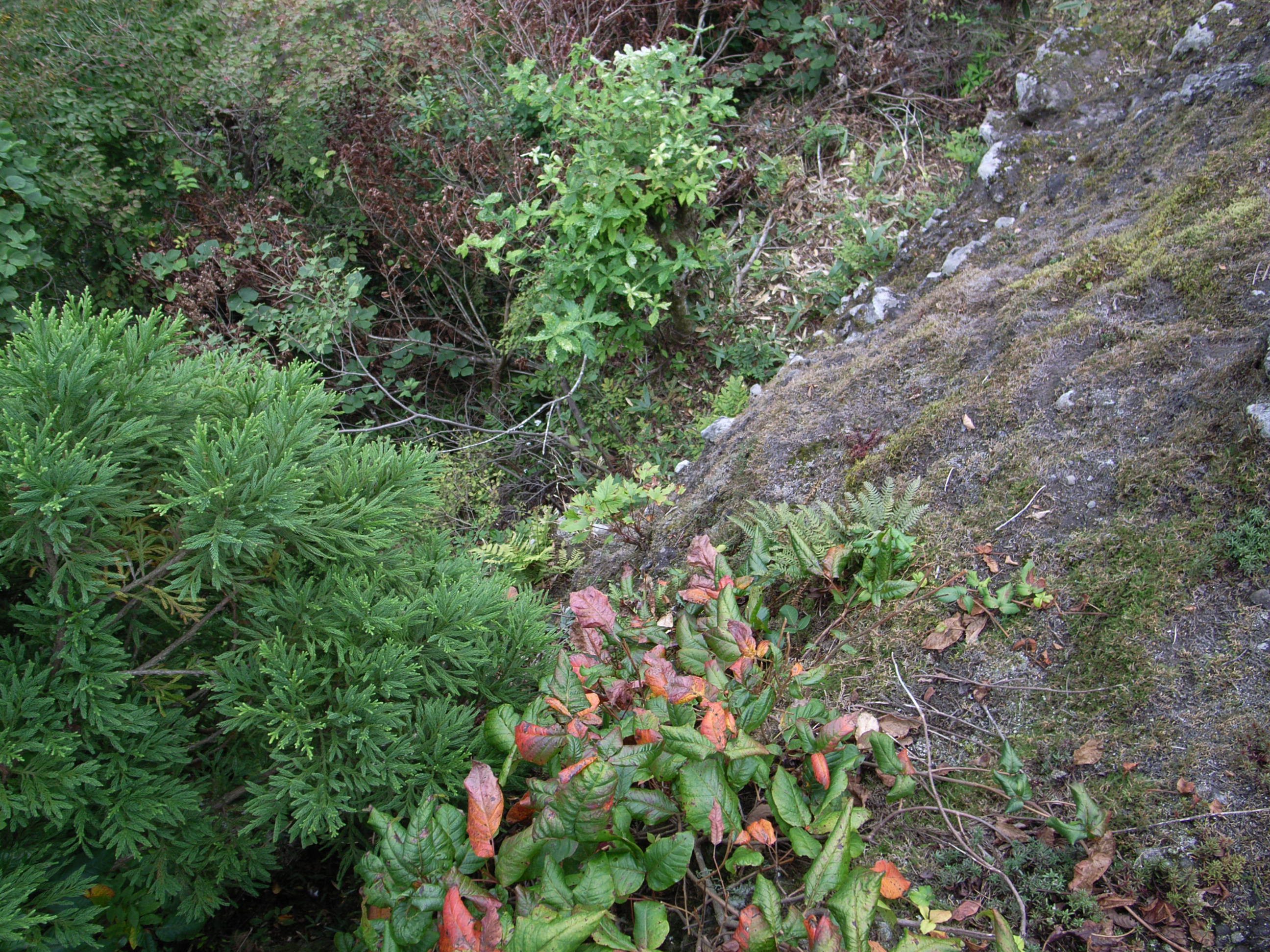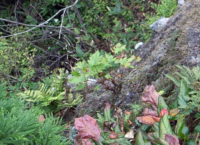この写真の中央で、楓のような葉をしたのが、そうらしいです(間違ってたらスンマセン)。夏には、小さな黄い花を咲かせるそうなので、それもぜひ見たいもんです。