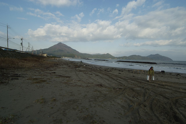 夏はきれいな浜ですが、冬が近づくにつれて、浜にはゴミや海草類が漂着します。