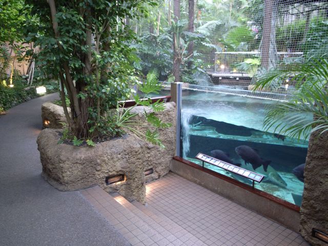 その中でおそろしく大きいピラルクなどの巨大魚が泳いでいるさまには