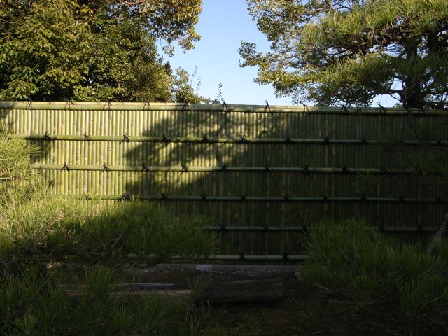 もう薄茶色になっていますが、この竹垣には西日が、もろに当たるので、