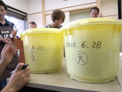 味はどのくらい異なるのか、実験するために別々に樽に漬け込みます。