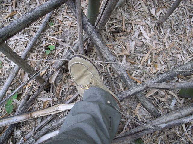 枯竹をバンバン踏み倒し、揃えて地面におくと、腐って土に帰るのです。