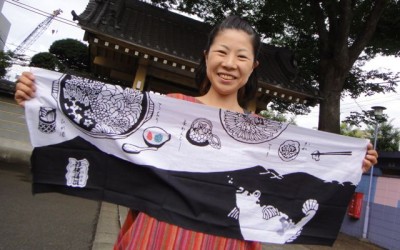 ご自身を紹介したくて、手拭いと一緒の写真を撮るまで待ってました。