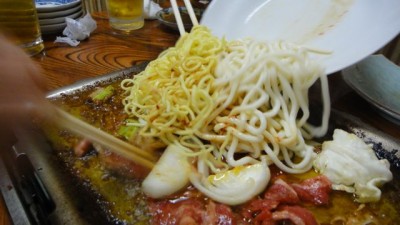 〆の麺をざばっと投入!