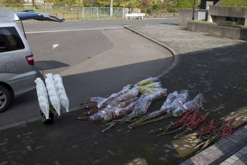 はるばる京都の市場から 花材をたっぷり仕入れての到着です。