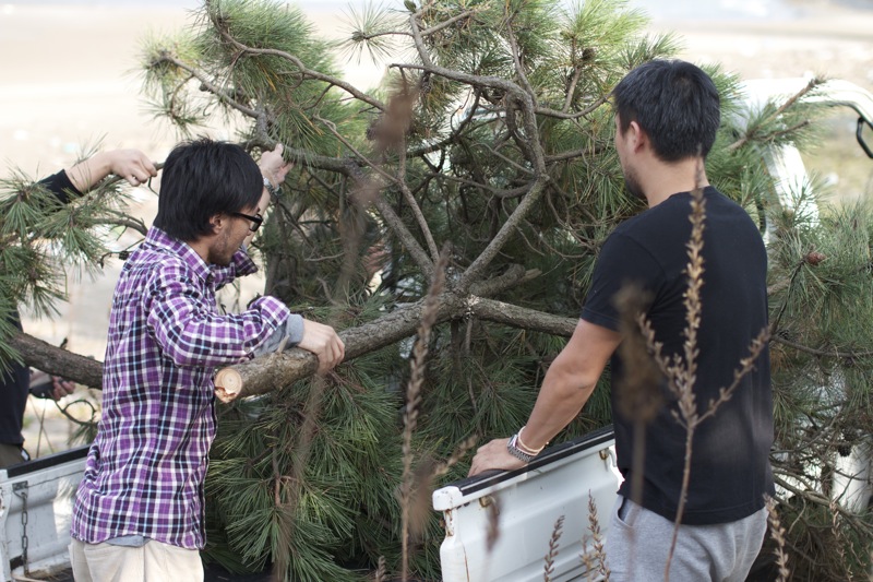 一通り花材を運び込んだところで「松」との出会いを求めていざ海岸へ。