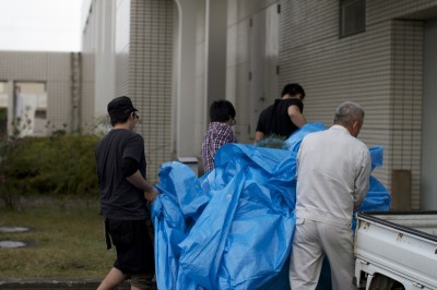 大きなブルーシートに来るんで会場まで運ぶことになりました。