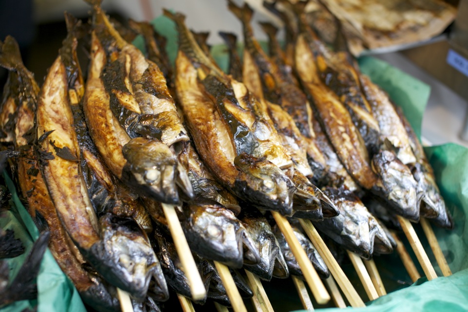 鯖を丸焼きや、ホタテ!、鮭の白子を炒めたものなど、