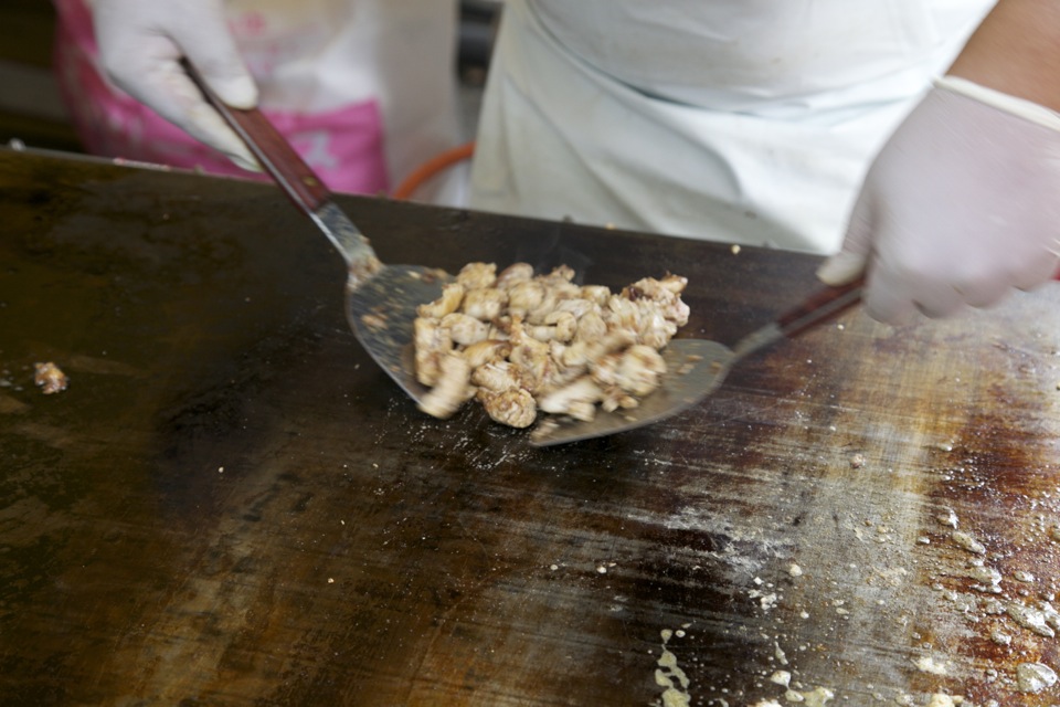 次々に量産される、ホルモン焼きそば。