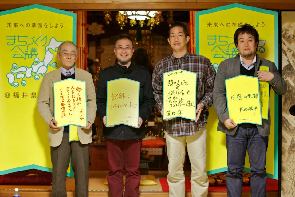 高浜の海に惚れて移住したという「浜仙人」さん。会場設置から気にかけていただき、またツイッター応援もありがとうございます。「まちづくり会議、どきどきする瞬間がいっぱいあった」と言ってもらえて本当にうれしかったです。怪我をされて当日来場できなかった「若狭大好きっ子」さん。高浜開催を一番喜んでくださっていたので本当に残念でしたが、でも思いは息子さん&まちねっとさんから伝わっていますよ。「ホリグチタカオ」くんも、情報発信&その他お手伝い、いつもありがとう!
