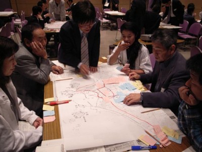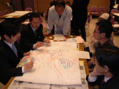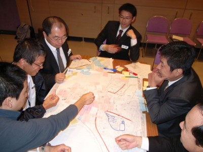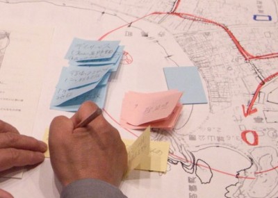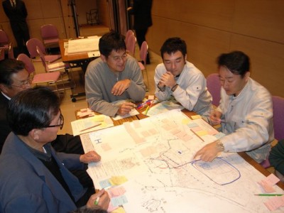 まず各グループが共通したまちづくりに関する基礎的な情報を書き込み、