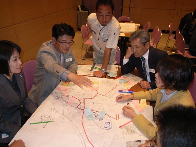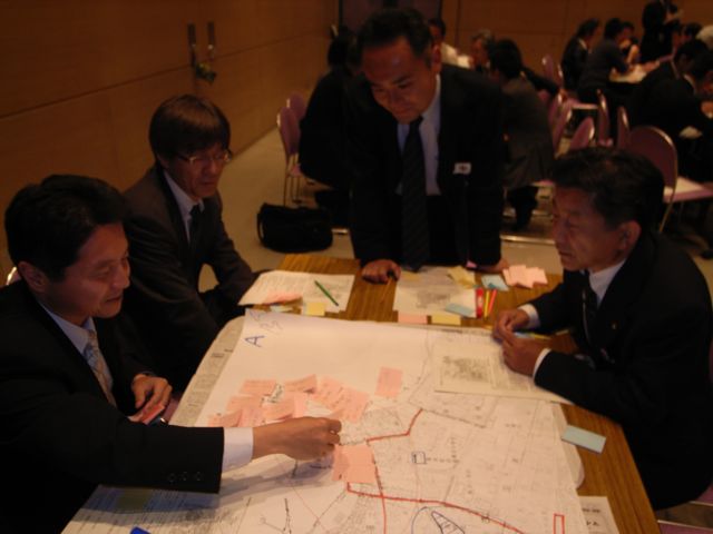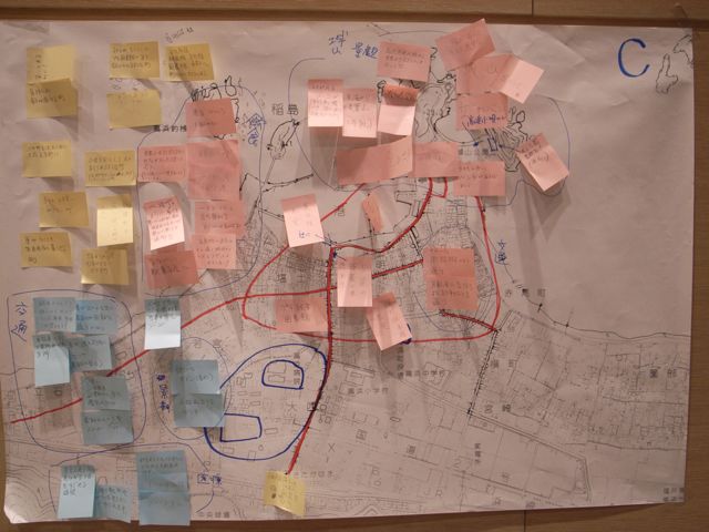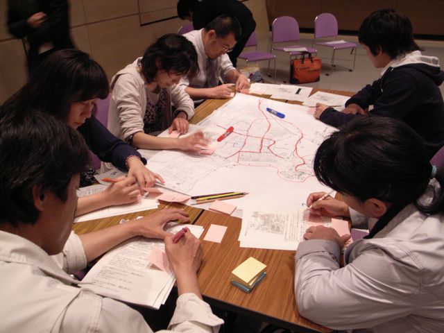 まず各グループが共通したまちづくりに関する基礎的な情報を書き込み、